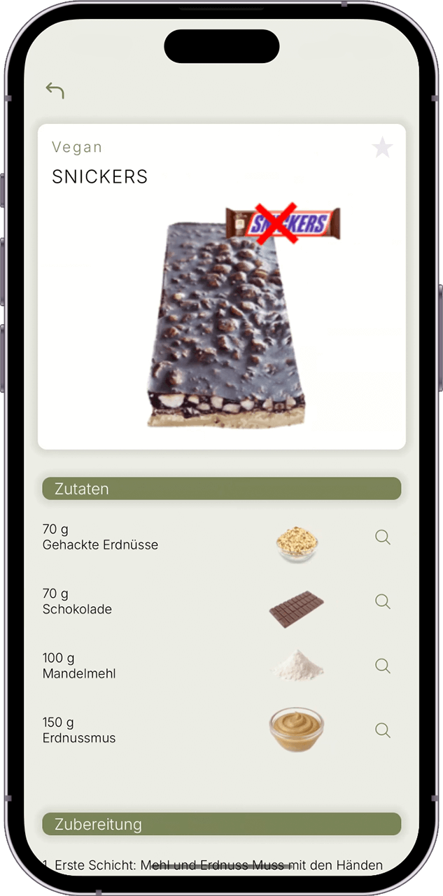 Was bedeutet der Naschhelfer? Der Naschhelfer enthält alle Rezepte ohne Backen. Das sind die einfachsten Naschereien, die ihr im Alltag nachmachen könnt – wie zum Beispiel Snickers, Bounty, Toffifee, Eis, Pralinen, Nutella und vieles mehr. Für diese Rezepte in eurer App braucht ihr kein Kochbuch. Die Zutaten habe ich euch direkt abgebildet.